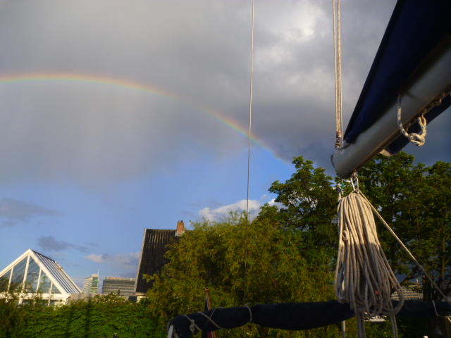 Unser Entschluss war bitter aber kam sofort. So schön kann Harlem gar nicht sein, dass wir 6 Stunden vor einer Brücke warten. So fuhren wir weiter nach Amsterdam in den Sixhaven. Die zwei Male davor waren wir in der Amsterdam Marina gewesen, die uns sehr gefallen hat und entgegen der Warnung von anderen Seglern vor dem Lärm der Werft wir davon nichts mitbekommen haben. Der Sixhaven ist modernisiert worden. Neue Sanitärgebäude und teilweise neue Stege. Sehr schön, aber die elektrische Versorgung ist nur mit 6 Ampere abgesichert. D.h. fast jede 220 Volt Zusatzabnahme z.B. Kaffeemaschine , Wasserkocher usw. blockiert die Stromversorgung. So war an diesem Tag die Hauptbeschäftigung des Hafenmeisters die Sicherungen wieder rein zu drehen.